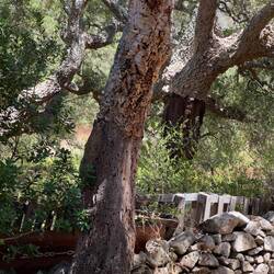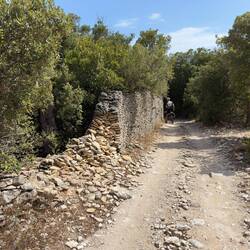 Der Weg nach unten ist etwas besser. Wir folgen dafür einem Wanderweg der nach Bonifacio führt. Relativ hohe Steinmauern, die teilweise eingestürzt sind, säumen ihn. Sie halten wohl die lästigen Wanderer von den Korkeichen auf der anderen Seite fern.