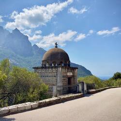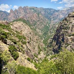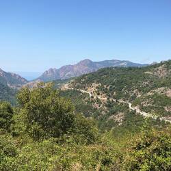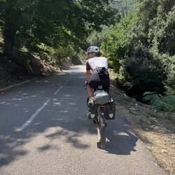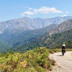 Wir starten den Tag mit Frühstück à la Camping - Müsli und Instantkaffee, verfeinert mit etwas süßer Kondensmilch. Dann geht’s auf zum Sevi Pass. Erst müssen wir uns einen garstigen Anstieg direkt vom Campingplatz raus hinauf quälen. Wäre schön wenn man langsam beginnen könnte, aber naja. Dann geht es eine Weile schön durch bewaldetes Gebiet bis wir die letzten km rauf zum Pass wieder ins ächzen kommen. Nun ist die Sonne auch schon sehr aktiv und der Baumschatten am Straßenrand fällt langsam weg. Am Pass angekommen mühen wir uns sogar noch einen kleinen Weg ganz nach oben und genießen hier endlich wieder eine kleine Brise und die Rundum-Aussicht.