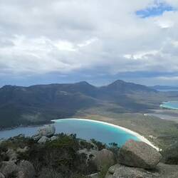 Heute waren wir auf Tracking Tour auf den Mt. Amos. Ein Weg der den gestrigen nochmal an Schwierigkeit übertroffen hat. Am Ende stand ein toller Blick auf die Wineglass Bay. Das Wetter war sonnig.Læs mere