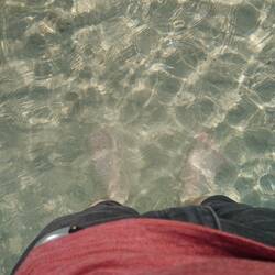 Nach der anstrengenden Bergtour auf dem Mt Amos übernachten wir im Bicheno Backpackers im 8ter Zimmer, ein schönes Hostel. Am Abend sind wir leider etwas zu früh, um die erst in der DämmerungLæs mere