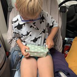 Edvin 10 år och han fick sin efterlängtade mobiltelefon med blått fodral. Radiobilarna och badet blev favoriterna hos både Edvin och Emma.