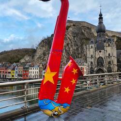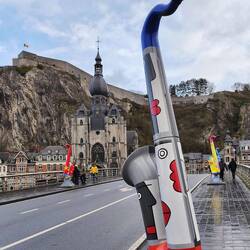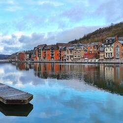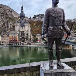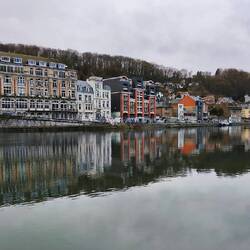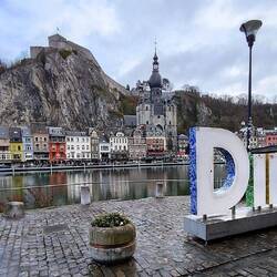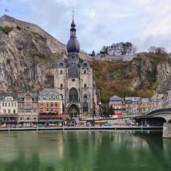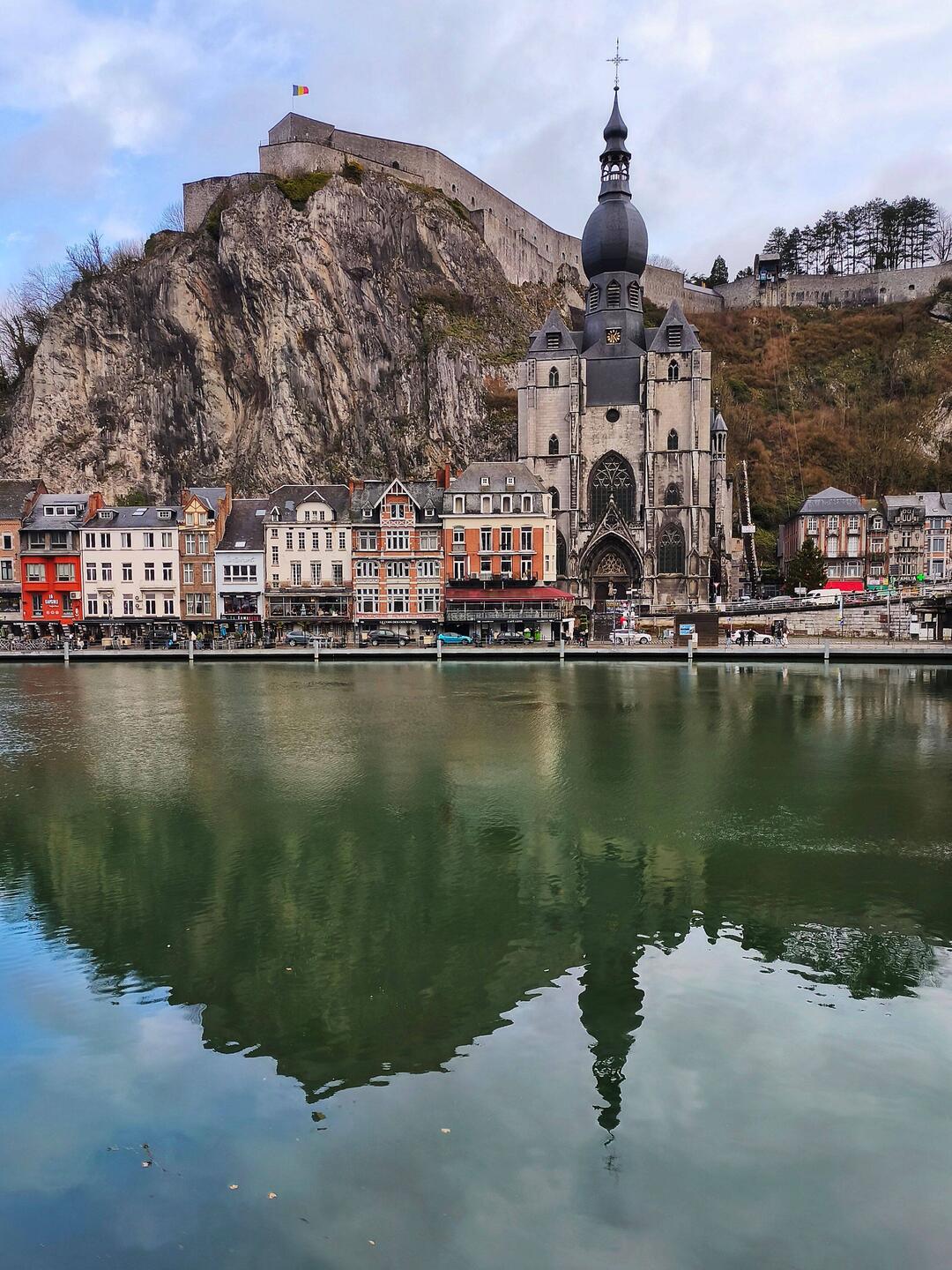 Dinant liegt malerisch an der Maas, eingebettet zwischen steilen Felsen und dem Fluss.