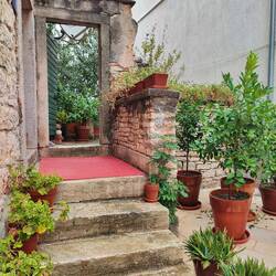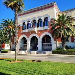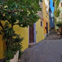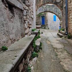 Durch ein Wirrwarr aus kleinen Gässchen ging es vom Hafen hinauf zur Kirche der Hl. Euphemia und wieder hinunter. Oben angekommen ging es dann nochmal auf abenteuerlicher Weise ca. 180 Stufen auf denLäs mer