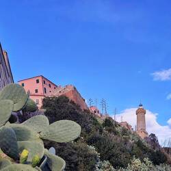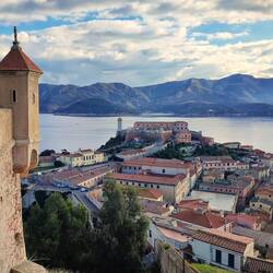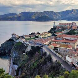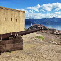 Der Wachturm Torre della Linguella steht markant an der Einfahrt zum Hafen von Portoferraio.