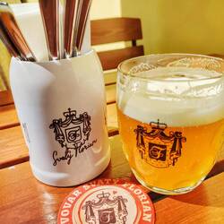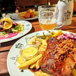 Leckeres selbstgebrautes Bier und gutes Essen in historischen Ambiente.
