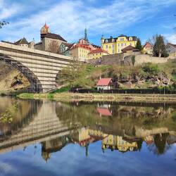 Mělník ist eine historische Stadt in Mittelböhmen, etwa 30 Kilometer nördlich von Prag, bekannt für ihren Weinbau und den malerischen Zusammenfluss von Moldau und Elbe.