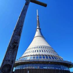 Der Ještěd ist ein markanter Berg bei Liberec in Nordböhmen, der besonders für seinen futuristischen Hotelturm mit Fernsehsender bekannt ist. Mit 1.012 Metern Höhe bietet er spektakuläreBaca lagi