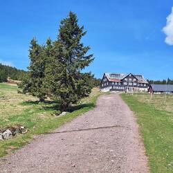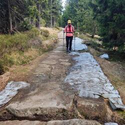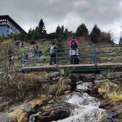 Mit dem Bus fuhren wir heute hoch auf die auf 1208m hoch gelegen Spindlerbaude. Von dort wanderten wir, zum Teil entlang der Tschechisch - Polnischen Grenze, zurück nach Spindlermühle.