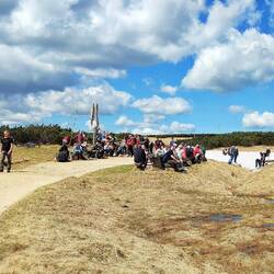 Heute wollten wir von Petzer mit der Seilbahn auf die 1603m Höhe Schneekoppe fahren. An der Talstation angekommen erwartete uns eine riesige Menschenschlange. Ich glaube halb Tschechien und halbBaca lagi