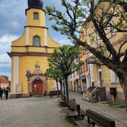 Auf dem Weg zur Burg kommt man zwangsläufig an der sehenswerten Bergkirche vorbei.