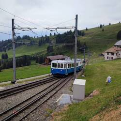 Mit dem Zug fahren wir nach Arth-Goldau. Von hier geht es weiter mit der Zahnradbahn auf die Rigi.