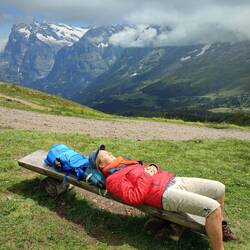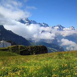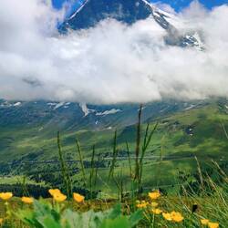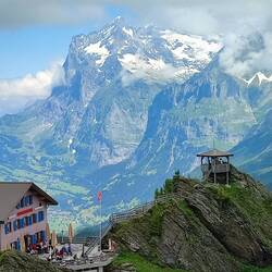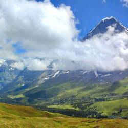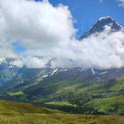 Am Morgen mit dem Zug über Lauterbrunnen nach Wengen. Weiter mit der Seilbahn auf dem Männlichen. Hier führte ein schöner Höhenweg zur Kleinen Scheidegg.
