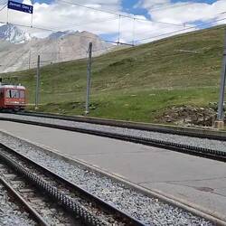 Heute der Höhepunkt unserer Schweizreise. Mit der Bahn geht es von Täsch nach Zermatt und dann mit der Gornergrat Bahn zum Gornergrat.