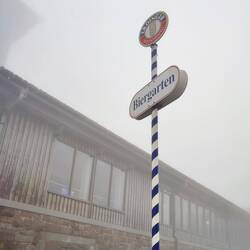 Oben angekommen gab es nicht viel zu sehen. Nur Nebel und Wind. Wenigstens gab es etwas zu essen und zu trinken.