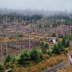 Zu Fuß wanderten wir vom Gipfel über Stock und Stein durchs Eckerloch und entlang des Bahntrassenwegs zum nächsten Bahnhof nach Schierke.