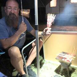 Der letzte Abend wurde dann auch mit einer Spezialität der Region gewürdigt: Rostinis ! Das sind kleine Lammspieße die kurz auf den Grill kommen und dann nur gesalzen werden! Lecker!!!!!!!!もっと詳しく