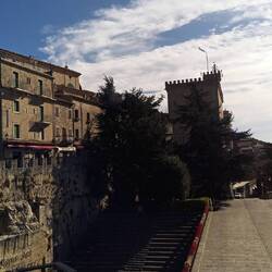 In San Marino war der Ausblick sensationell - auch wenn der Sturm das Genießen etwas beeinträchtigt hat. Uns standen die Haare zu Berge! In den kleinen malerischen Gassen gab es allerdingsもっと詳しく
