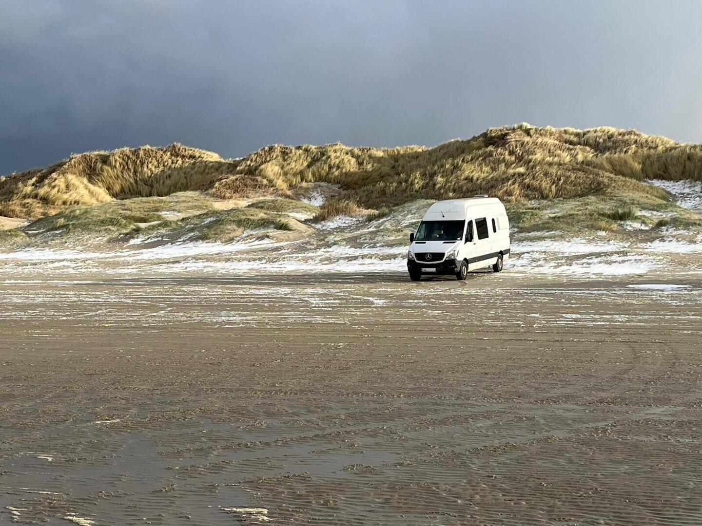 Heute machen wir nur einen kleinen Strandausflug nach Römö zur bekannten Oldtimer Strand Rennstrecke für Fahrzeuge vor 1947. Der Strand ist bestimmt 2 km breit.