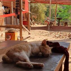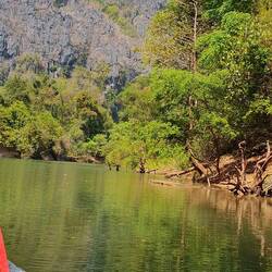 Super beeindruckend. Mit dem Motorboot ging es fast eine Stunde durch die stockfinstere Höhle mit kleinen Zwischenstopps. Mysteriös und entspannend zugleich. Am Ende kamen wir an einem kleinen Dorf an, wo es nach einem Kokosnussdrink wieder zurück ging. Nach einem kurzen Bad im See bin ich zurück zur Unterkunft.