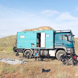 The road to Mestia is partially in bad condition and leads me through a long canyon. After arriving in Mestia, I noticed a truck with a German registration number. I went there and got to know Czytaj więcej