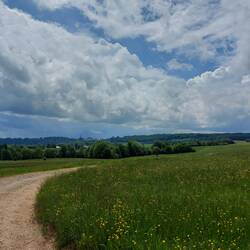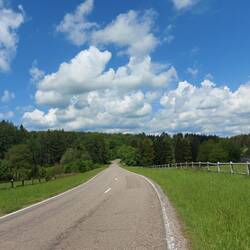 Nach Lottert ist Schluss mit lustig. Die nächsten 10 km gehen über Asphalt und zwischendurch 5km schnurgerade über eine alte Römerstrasse. Wehrmutstropfen : Die Landschaft rundherum ist wunderschön.