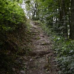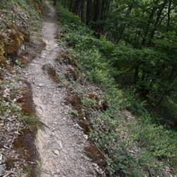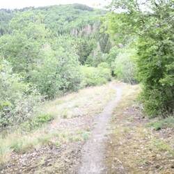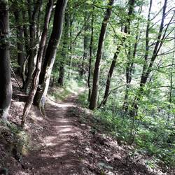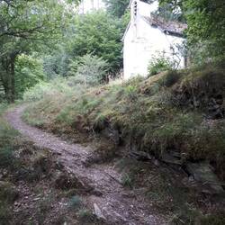 Nach der Burg schlängelt sich der Weg oberhalb der Sauer. Erst als Forstweg und letztendlich als Trail mit alpinem Charakter der die Feischterleen passiert. Am Ende der Trailpassage landet man auf einem Wiesenpfad des Feischterhaff, einem abgelegenem Bauernhof.Read more