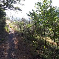 Nach den ganzen Höhenmetern gestern und dem lecker Gerstensaft im Cafe des Campings, hab ich geschlafen wie ein Murmeltier und gehe erst um 9 los. Es ist bewölkt, aber trocken. Gleich hinter dem Camping geht es steil bergauf und über Singletrail, der Wandertraum geht weiter. Nach wenigen Kilometern erreiche ich eine schöne Burg, die sich im Privatbesitz befindet und nicht zu besichtigen ist.Read more