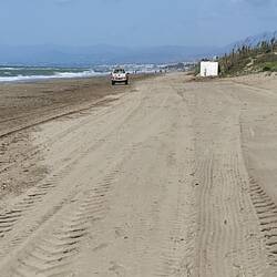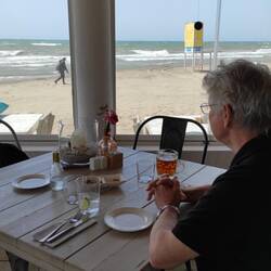 Gestern hat Burkhard eine Fahrradtour bis zum Ende der Halbinsel gemacht. Die vielen großen Hotels noch geschlossen und die Rollläden runter.