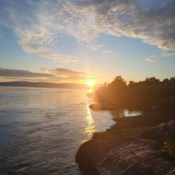 Weiter geht es, zur letzten Fähre bis Bodø. Ein letztes Mal treffe ich Antje und Holger, wieder eine tolle Überfahrt bei immer tiefer liegende Sonne.
