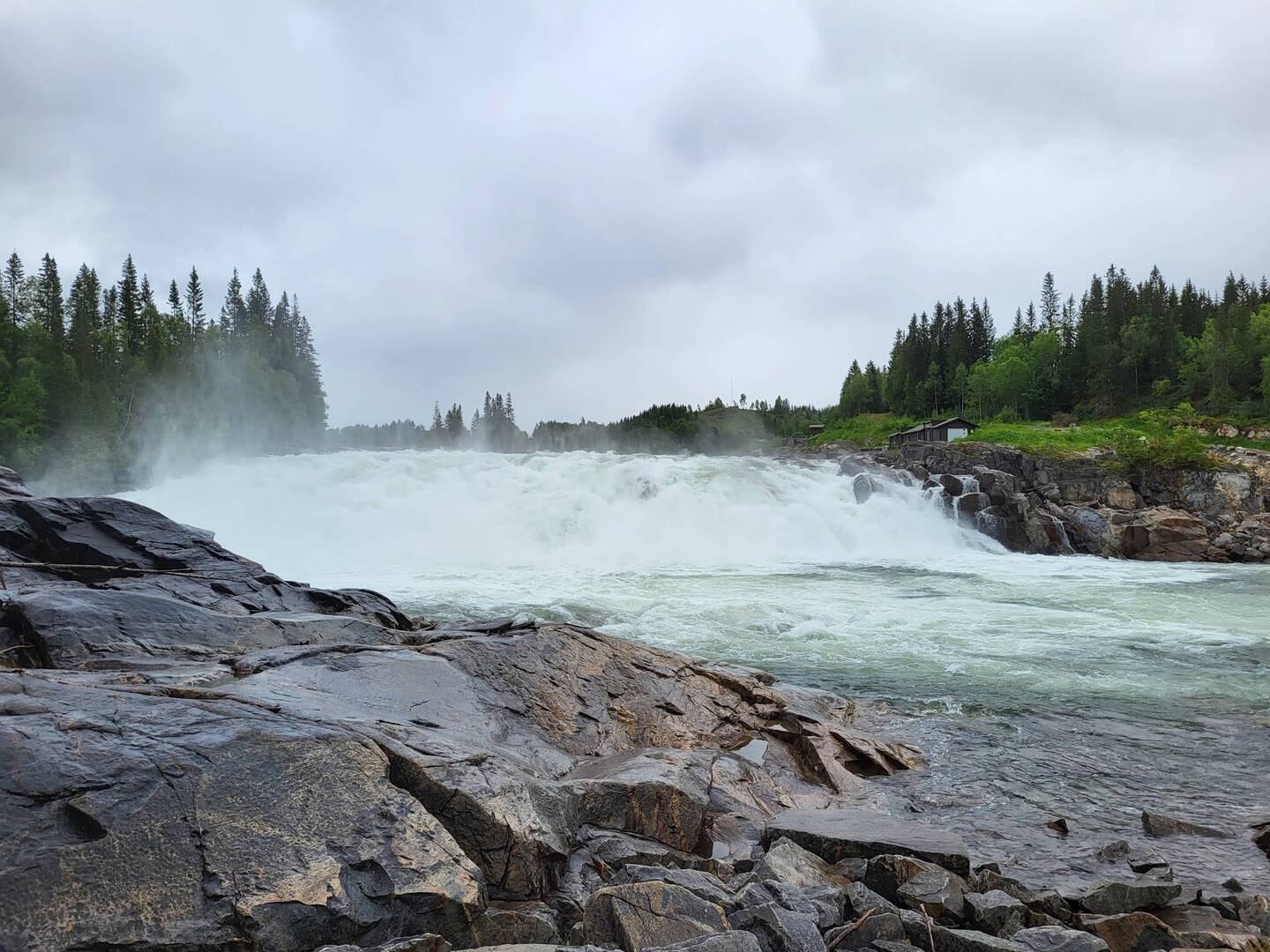 Kurz hinter Mosjøen befindet sich direkt an der Strasse ein imposanter Wasserfall, der Laksforsen.
