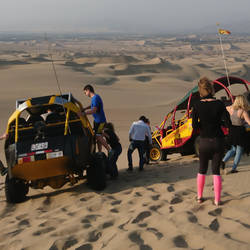Kaum im Hotel Suissa in der Oase angekommen, mussten wir uns schnell umziehen. Fertig zum Buggyfahren und Sandboarden in den Dünen. Yeah. Ein Wahnsinnserlebnis. Auch wenn es mich einige ÜberwindungBaca selengkapnya