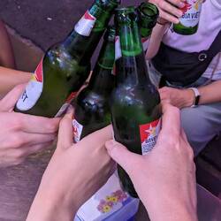 Abends holt uns Quang noch zu einer kleinen Tour ab. Banh Mi, Reiseiernockerl, Dim Sum und Schwarze Sesamsuppe. Anschließend noch auf ein Bier in die Partymeile.