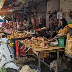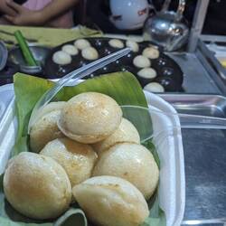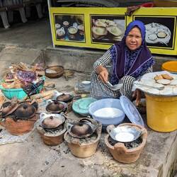 Ein bisschen die kleinen Stände am Flussufer testen. Essen wir die Einheimischen.