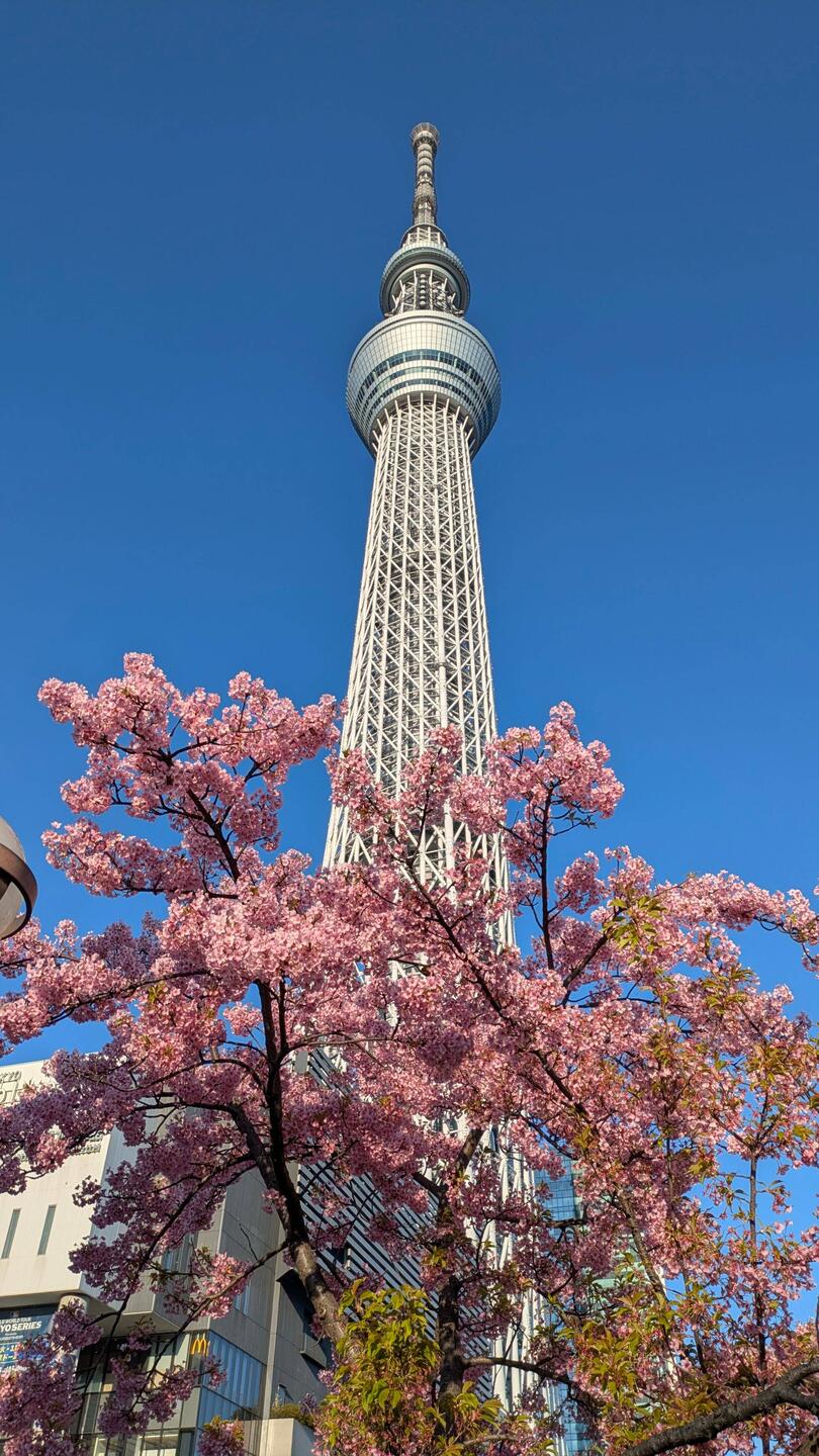 Nach einer kurzen Pause im Hotel, machen wir uns auf den Weg Richtung Sky Tree. Die Parkanlage entlang des Sumida Rivers ist echt super schön, hier gibts auch viele Kirschbäume.