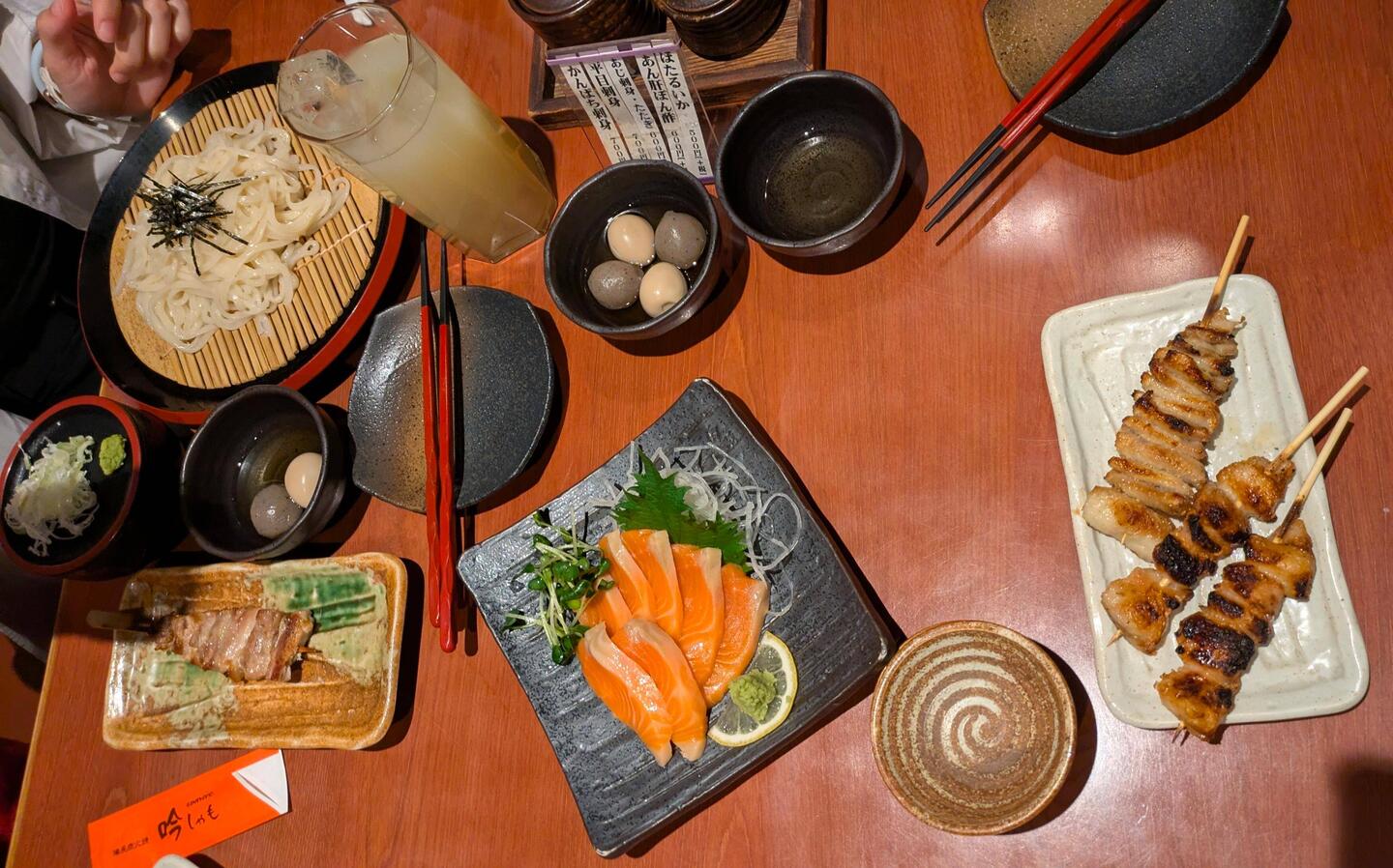 Dinnertime - heute gibts Yakitori - Spießchen in jeder Variante - und Sashimi. Soooo gut. Auch wenn hier niemand englisch spricht, haben wir uns durch gewurschtelt. Nur Wasser gibt's hier nicht zuRead more