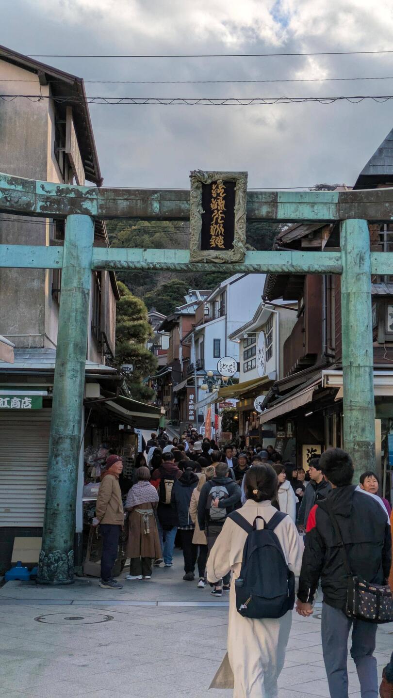 Mit der grünen "Straßenbahn" gehts dann die Küste entlang nach Enoshima. Eine Tempelinsel, leider waren wir etwas spät dran, also konnten wir die bekannten Höhlen nicht mehr besichtigen.Read more