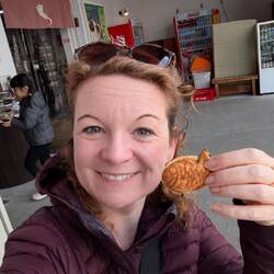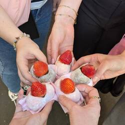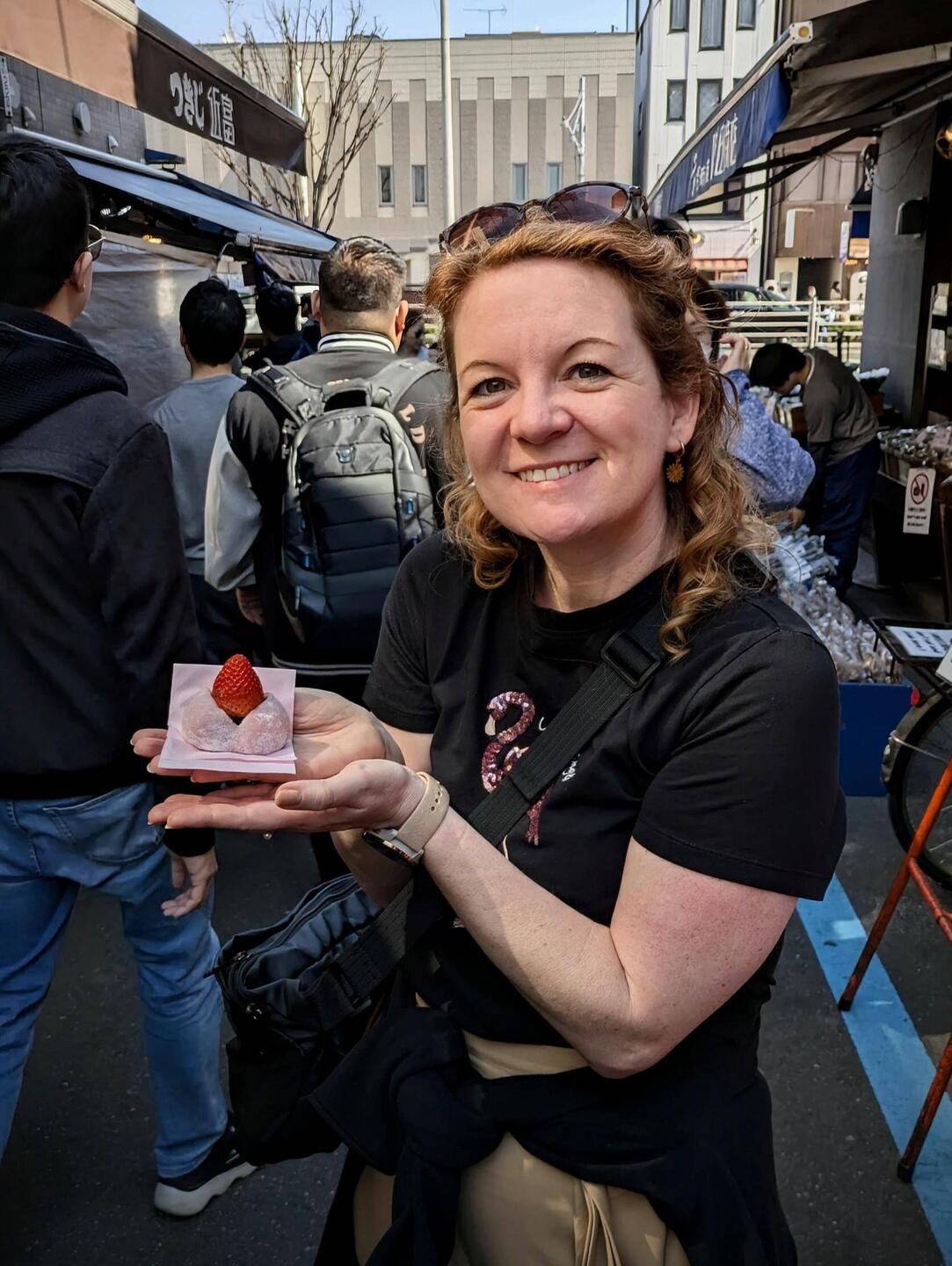 Wir haben nur kurz Zeit am Fischmarkt. Und es ist sooooo voll hier. Aber mit Hilfe von Google Maps finden wir einen Erdbeer Mochi Spot. Sooooo gut.