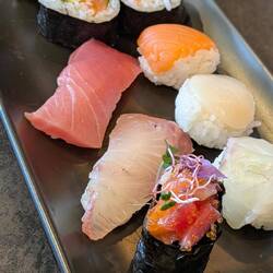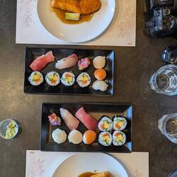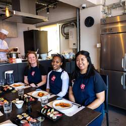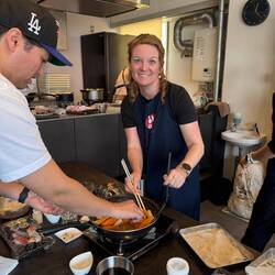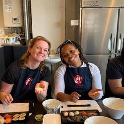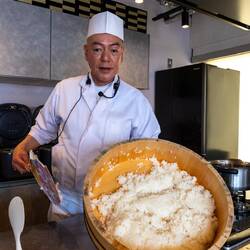 Jetzt wird erstmal unsere Mittagessen zubereitet. Sushi in allen Varianten. Außerdem lernen wir auch die Zubereitung einer einfachen Misosuppe und Teriyaki Lachs.