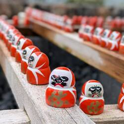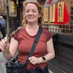 Ab in die Berge. Heute zum 1. Mal ein kurzes Stück mit dem Shinkansen. Kaum angekommen gehts zum Sake und Hida Beef Tasting. Was Süßes gibts natürlich auch noch. Sarubobo wacht über uns.