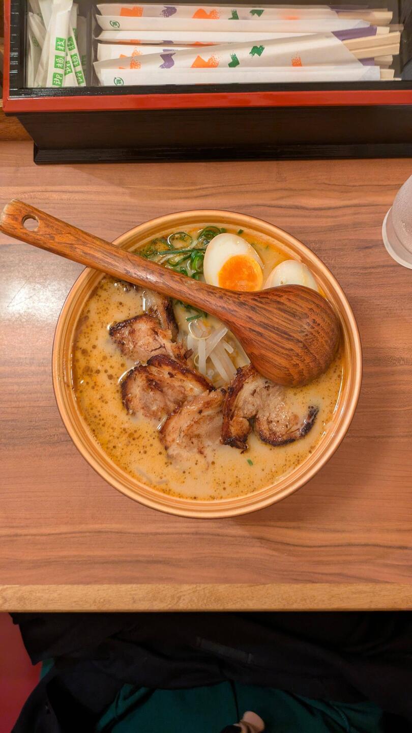 Gute zwei Stunden gewartet. Seeeehr leckere Ramen. Vorallem das Fleisch war zum Niederknien.