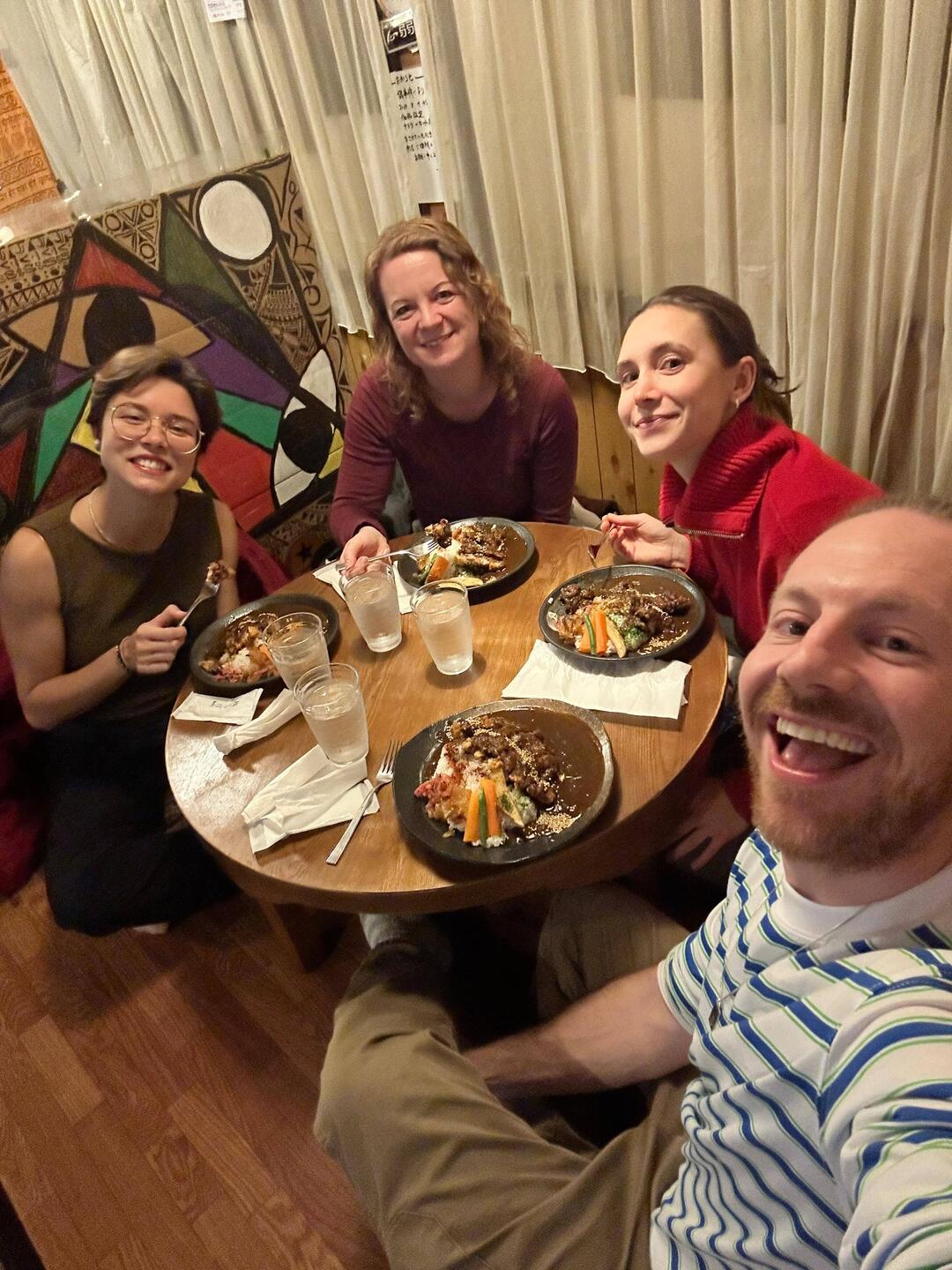 Unser letztes Dinner in Japan. Nochmal Mini Gruppentreffen mit Craig, Laura und Visesh. Ein Tischgrill, ist das nicht fancy?!