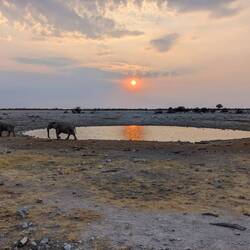 NamibiaTravelerShow tripAdd to bucket listRemove from bucket listShareDay 5Sunday, September 25, 2022 at 6:26 PM ☀️ 31 °C Altitude: 1,110 m NamibiaOkaukuejo-19.180804, 15.91576619°10’51” S 15°54’57” EWasserloch beim Sonnenuntergang September 25, 2022 in Namibia ⋅ ☀️ 31 °C 0 likes Show trip