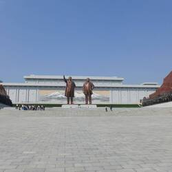 Heute gehts zuerst zum MansudaeHill mit dem Großmonument Mansudae (만수대 대형동상), dem zentralen Monument in Pyongyang.