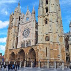 For the last couple of days the path had been along side almost deserted country roads, which I've walked along rather than the stony path. Today is the same, except it was a busy road which turned into a dual carriageway on the outskirts of Leon and the countryside gave way to sporadic light industrial buildings and some retail for a couple of miles. Until we could see Leon in the distance under some very low cloud.