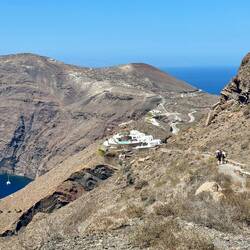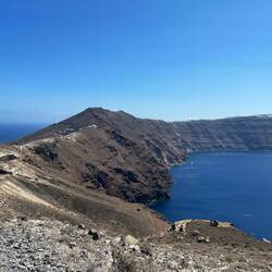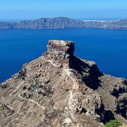 Today we caught a bus to Fira to spend a leisurely day walking the 10 km back to Oia. After eating breakfast at a restaurant with an incredible view of the port with all the big cruise ships anchoredEn savoir plus