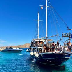 What a fabulous time we had with the Santorini Sailing Club! There was only 10 passengers and 5 crew so we were really doted on. The catamaran was so comfortable with lots of lovely places to sit/lieEn savoir plus