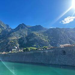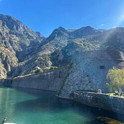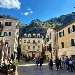 Kotor is a cute little walled town in Montenegro . Montenegro means black Mountain and all the coastal towns have an imposing mountain range behind , it is very beautiful.