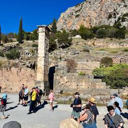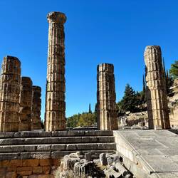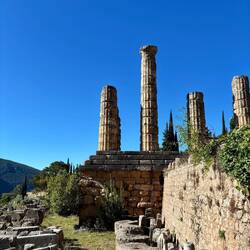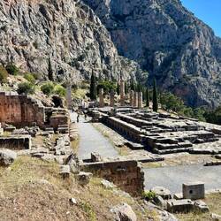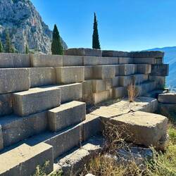 Delphi is nestled right up high in the mountains and is renowned for the Temple of Apollo and built the city in his honor.