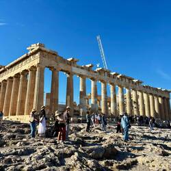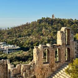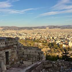 Athens is a vibrant city. Nothing is over 6 floors tall so it sprawls as far as the eye can see.