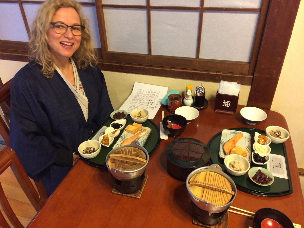 A traditional Japanese breakfast is an experience and not particularly to my liking as it is quite a savory experience with different vegetables and fish and rice...not something many WesternersLue lisää